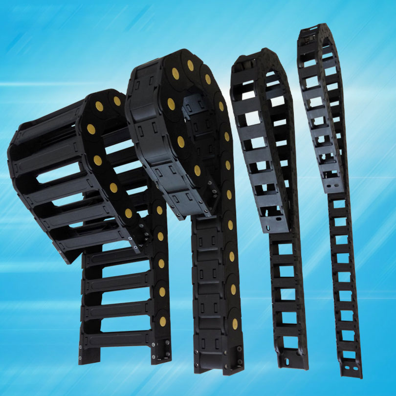 5. 拖鏈已被廣泛用于數控機床,電子設備,消防機械設備,石材機械,玻璃機械,門窗機械,注塑機,機械手,超重運輸設備,自動化倉庫等。塑料尼龍拖鏈又稱工程拖鏈,坦克鏈。拖鏈根據使用環境和使用要求的不同分為橋式,全封閉,半封閉三種.